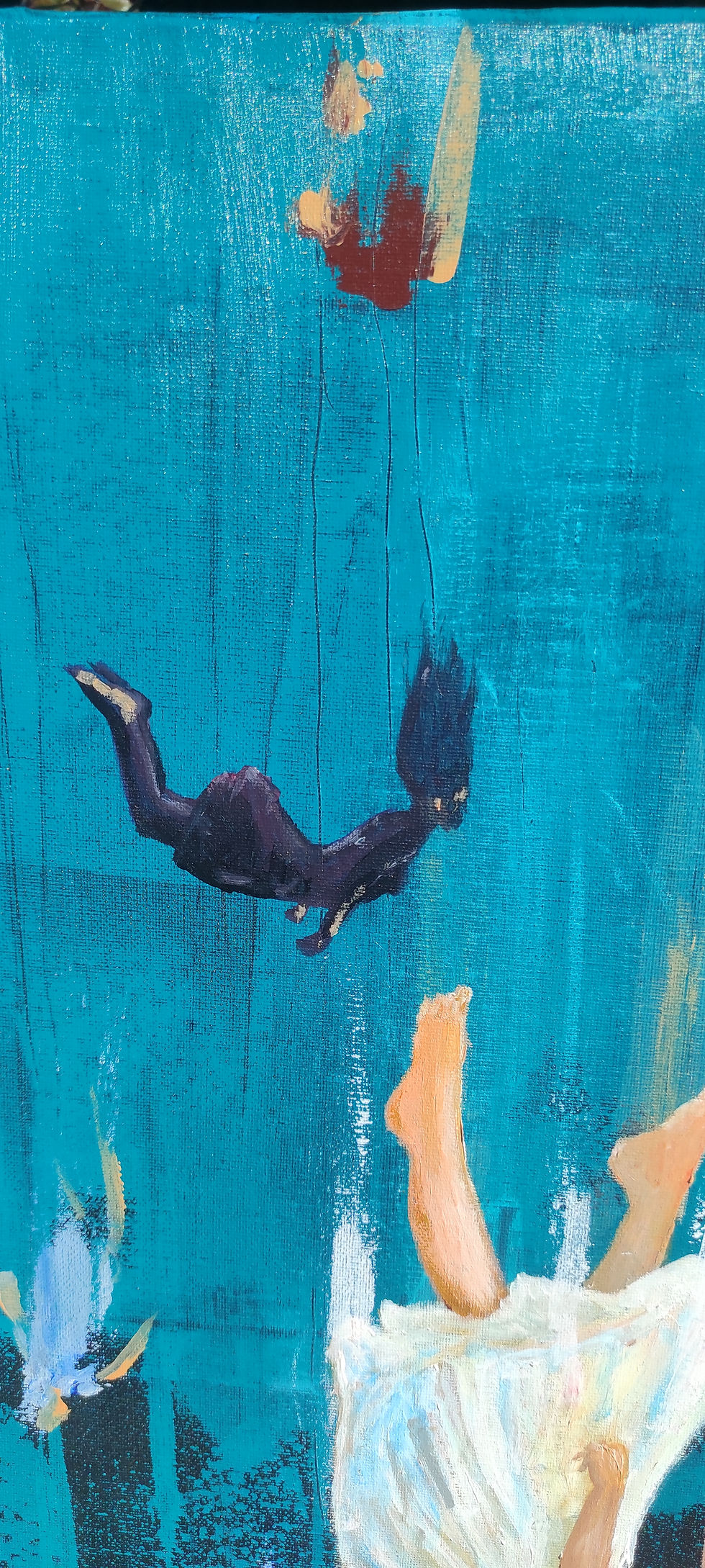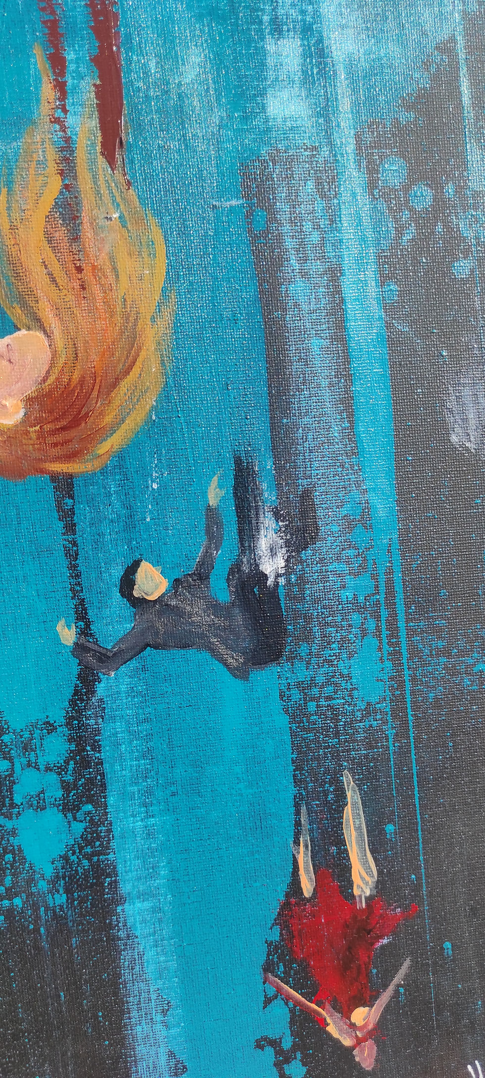 Il quadro rappresenta persone che precipitano verso il basso, in uno sfondo che confonde, tra cielo e profondità della terra. Quando la persona smarrisce il senso della vita e trascorre i suoi giorni nella ripetizione vuota di gesti utili alla sussistenza o semplicemente per mantenere abitudini in cui si identifica, cade lentamente nell'oblio di sè.